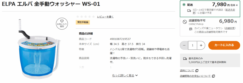 カインズホームやコーナンなど、一部のホームセンターでも手動脱水機を購入できます。ホームセンターの魅力は、DIY用品や防災グッズと一緒に見て回れること。